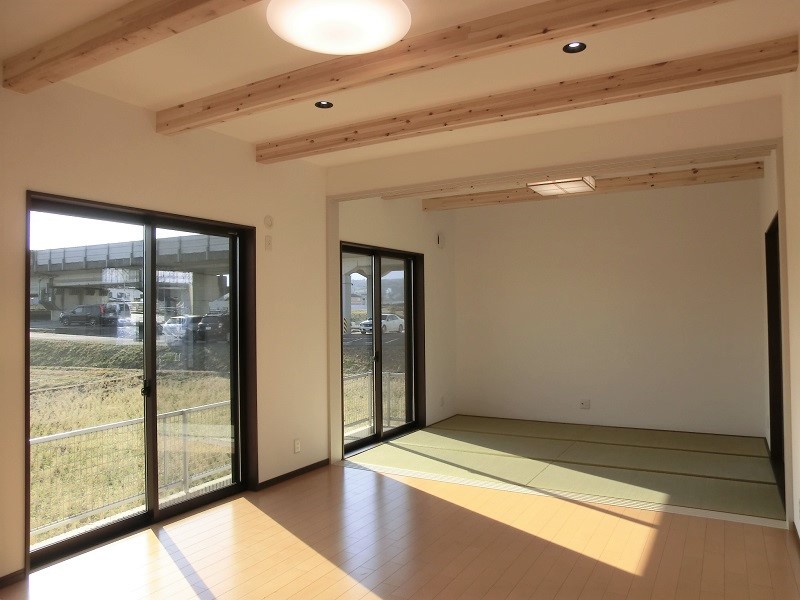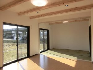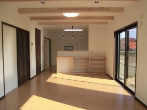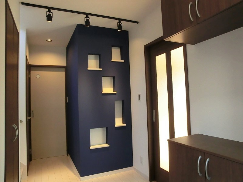 クローゼット上ロフトの家 屋根勾配に合わせて天井を上げ、 クローゼット上を利用したロフトです。 限られた空間をうまく利用しました。 LDKは優しい色づかいに癒されます。 キッチンの照明が特徴的で さりげないアクセントとなっています。 様々なニッチや丸窓により 演出された玄関ホールが個性的です。