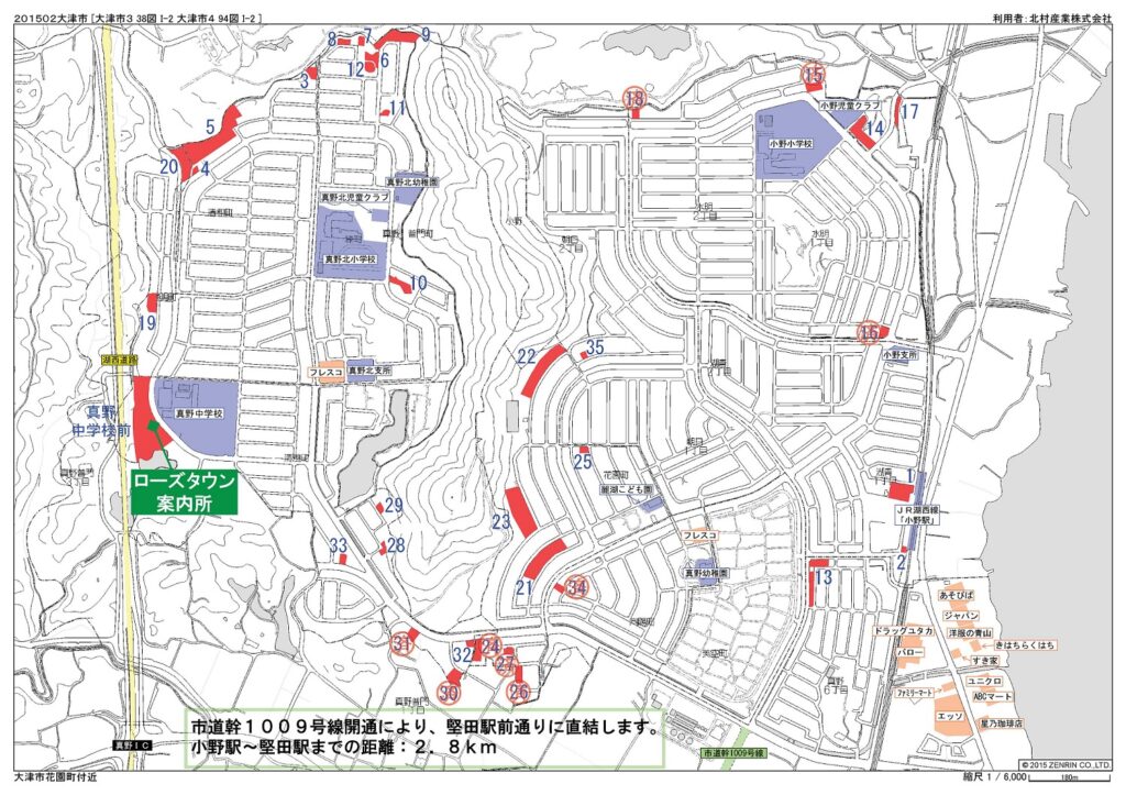| ローズタウン真野中学校前 | 大津市清風町 | 21区画 | 153.71㎡~1641.74㎡ | 1,063万円~3,240万円 |