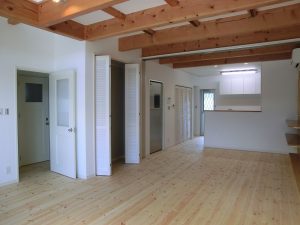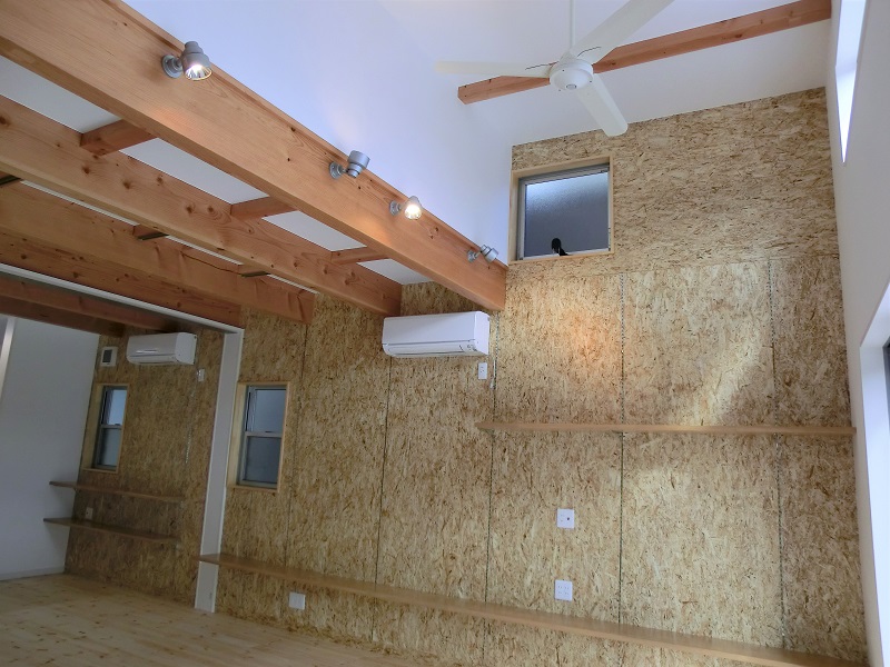 吹抜リビングとOSBの家