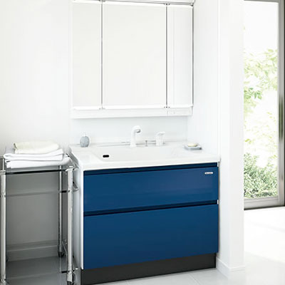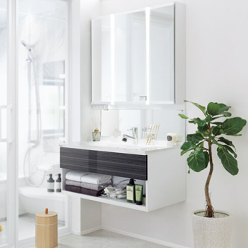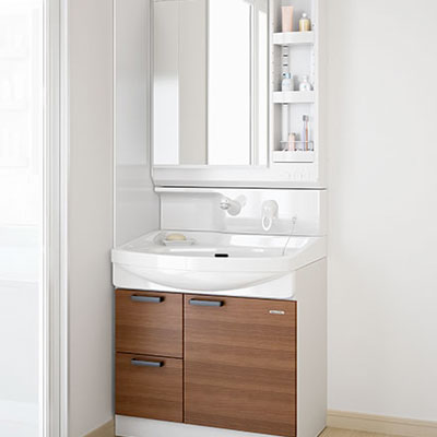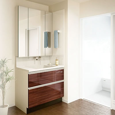 子育て中の女性の使いやすさを考えたら、小さなお子様がひとりでも楽しく身支度できる 親子にとって使いやすい洗面化粧台になりました。 もちろんお肌のケアやメイクなど自分磨きもスムーズにできる仕様です。