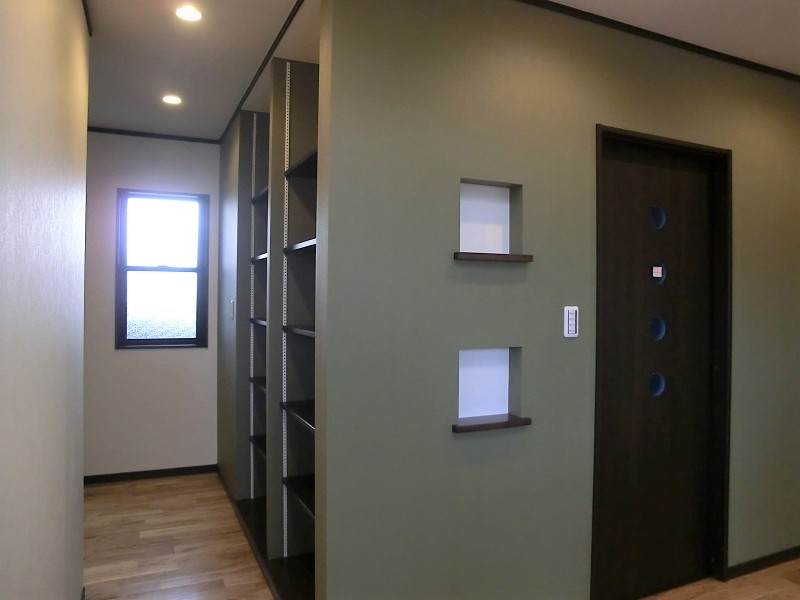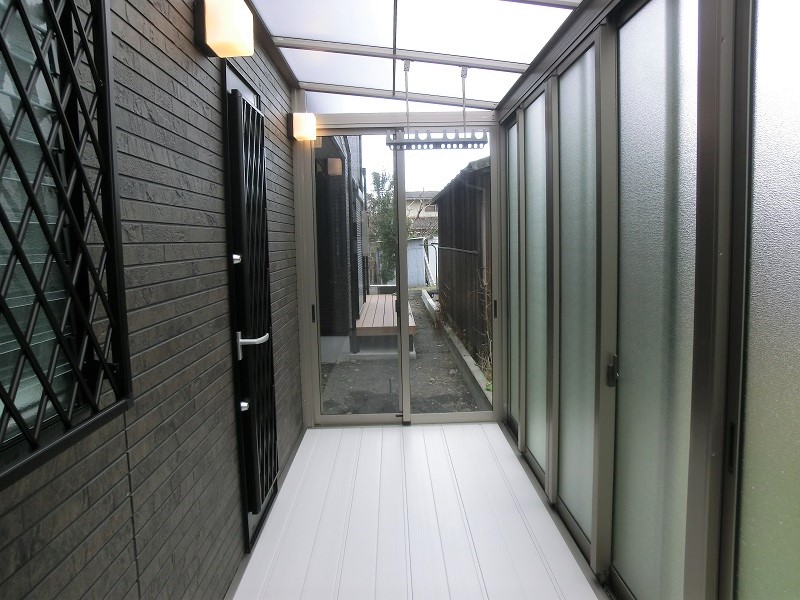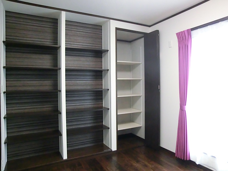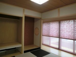 機能性抜群の快適な家 至るところに収納や本棚をつくり、 積極的にエコカラットを取り入れて、 快適な空間をめざしました。 縁側のある和室は、空間に広がりを持たせ 書院窓とともに和の風情を感じさせます。 広々とした二階のフリースペースに 多目的に利用できるテラス囲いなど、 機能的な魅力が満載のお家です。
