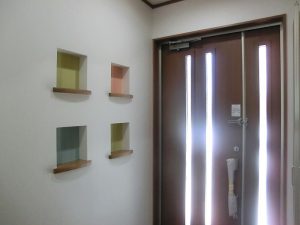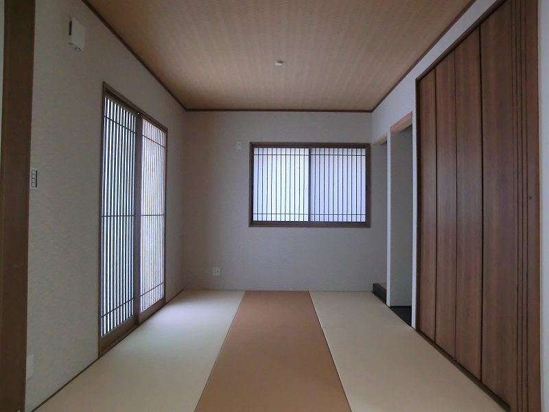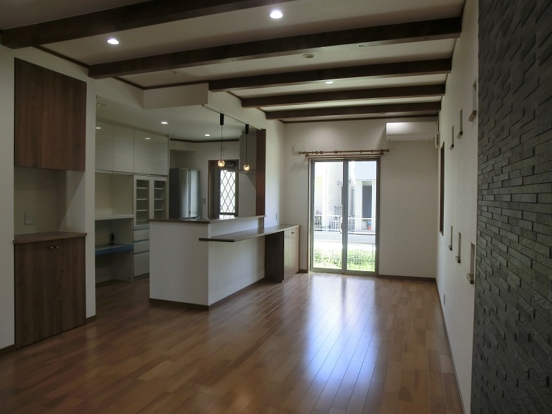 洗練された和モダンの家 落ち着いた色使いでまとめられた 和風の内装に、四角の小窓やニッチが アクセントに散りばめられていて素敵です。 化粧梁やダークグレーのエコカラットが 和の雰囲気を一層引き立てています。 小屋裏収納は明るく開放的で、 15帖もの空間をどう使うか楽しみです。