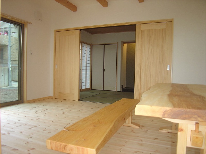 無垢の床材を取り入れ、